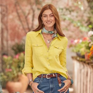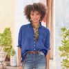 The coziest. mixed-print double cloth pajama top fashioned from yarn-dyed cotton. with covered laundry button front. lace and piping detail throughout and one pleated pocket. Machine wash. Imported. Exclusive. Sizes XS (0–2). S (4–6). M (8–10). L (12–14). XL (16–18). XXL (20–22). Approx. 25l. This item is running large. please size down a size.