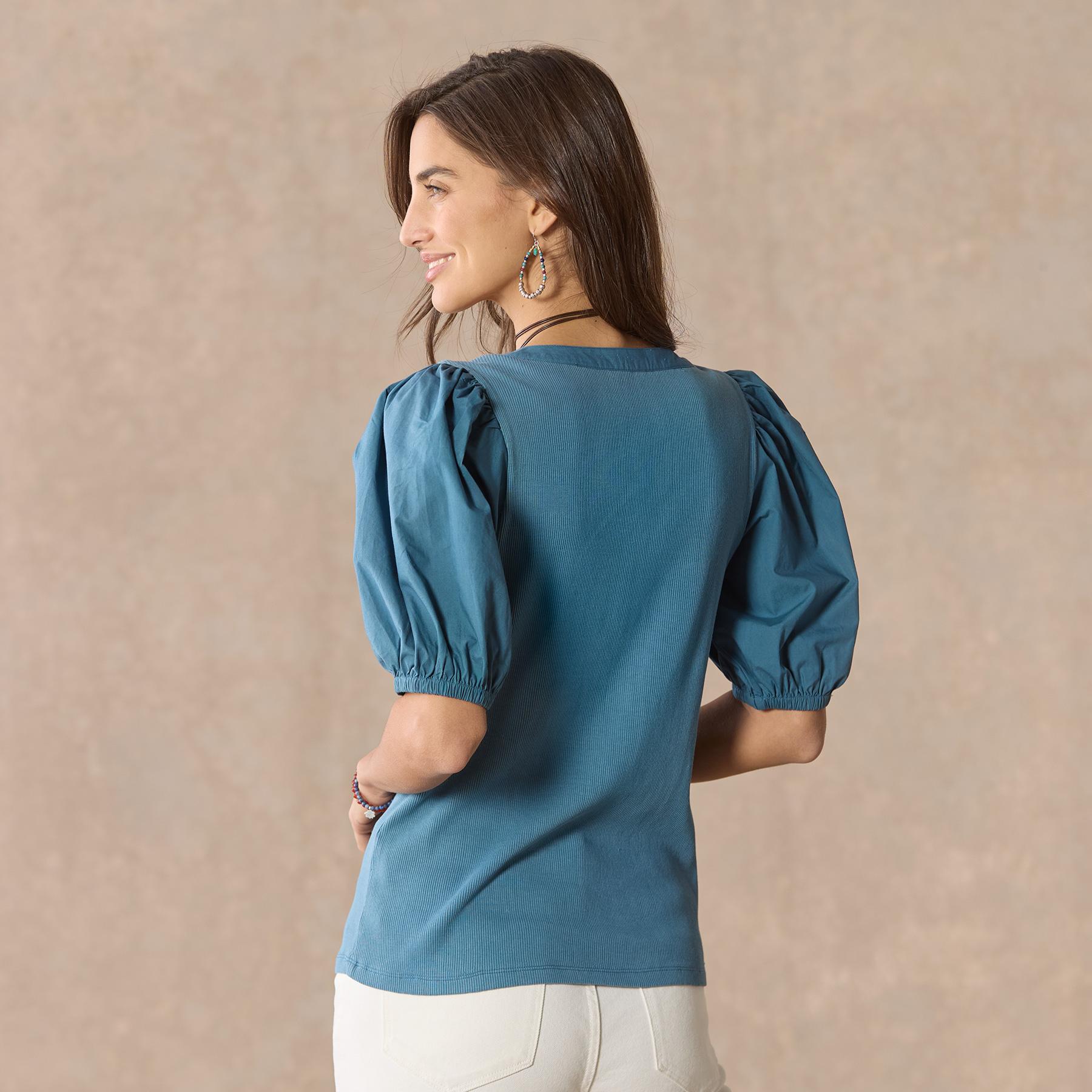 Our classic henley with a touch of feminine beauty featuring poplin sleeves and placket. laundry buttons and contract lace at the back neckline. Elastic cuffs. Cotton/spandex. Machine wash. Imported. Exclusive. Sizes XXS (00). XS (0?C2). S (4?C6). M (8?C10). L (12?C14). XL (16?C18). Approx. 23l.