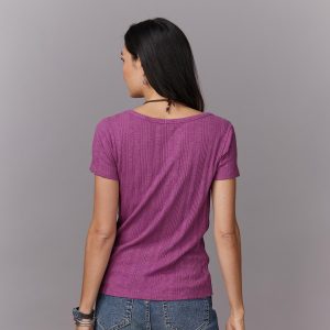This lightweight. stretchy classic scoop neck tee features a soft slub stripe texture. Cotton/modal/spandex. Machine wash. Imported. Sizes XS (0-2). S (4-6). M (8-10). L (12-14). XL (16-18). XXL (20-22). Approx. 24l.