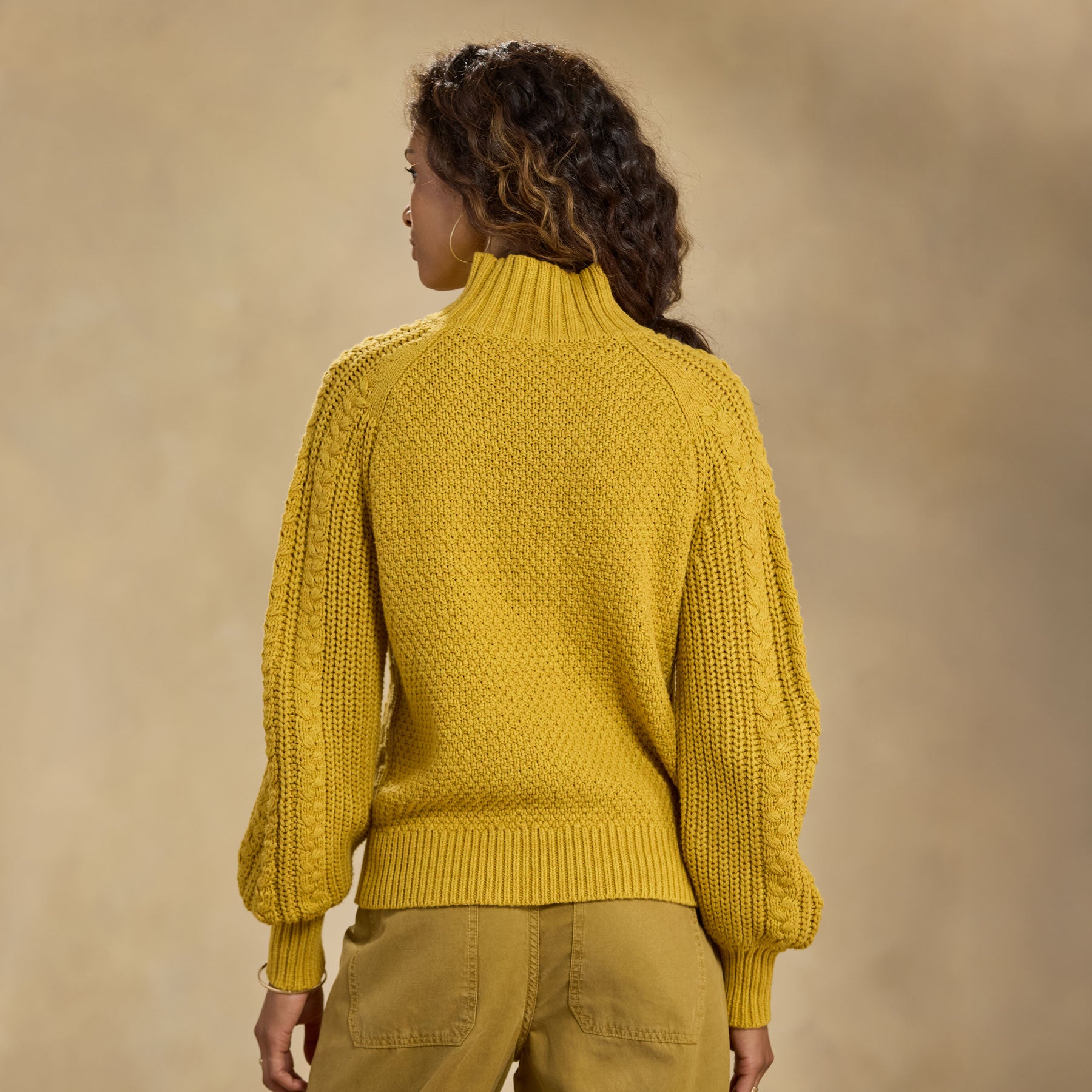 A celebration of texture. our patchwork-inspired mixed stitch pullover pleases so with a tonal marled look. mock turtleneck. rib trim and subtle volume sleeves. A great everyday staple. Hand wash. Imported. Exclusive. Sizes XXS (00). XS (0–2). S (4–6). M (8–10). L (12–14). XL (16–18). Approx. 21l.