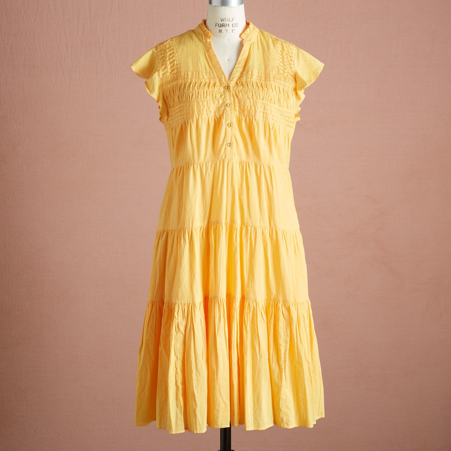 Flowing and breathtaking. our dramatic popover midi dress features a henley placket. pintucks. tiers. ruffles and eyelet-covered buttons. Cotton/lyocell. Machine wash. Imported. Exclusive. Sizes XS (0-2). S (4-6). M (8-10). L (12-14). XL (16-18). XXL (20-22). Approx. 41l.