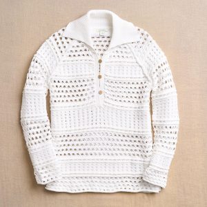 Live like every day is a beach day with our easy. pullover sweater light. airy and full of stunning pointelle and mixed rib texture. Jersey roll finish. side slits. Cotton. Hand wash. Imported. Exclusive. Sizes XXS (00). XS (0-2). S (4-6). M (8-10). L (12-14). XL (16-18). Approx. 23l.