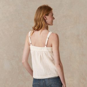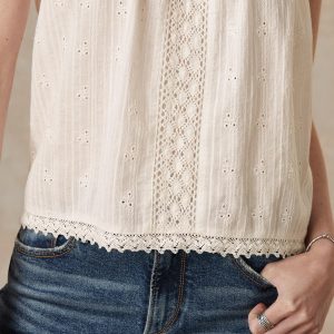 Vintage-inspired. oh-so-feminine camisole with beautiful tonal embroidery and lace details at neckline and front. Adjustable straps and elastic at back neck for comfortable fit. Cotton/viscose. Machine wash. Imported. Exclusive. Sizes XS (0–2). S (4–6). M (8–10). L (12–14). XL (16–18). XXL (20–22). Approx. 25l.